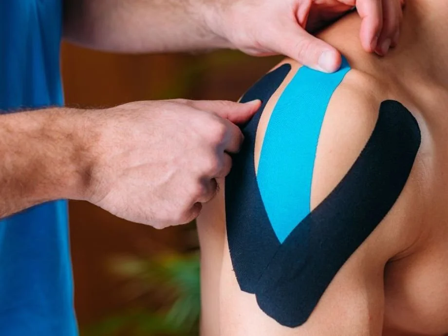 Kinesiology taping is a stretchy, adhesive tape designed to support muscles and joints. It may assist in decreasing pain and muscle tension, and increase range of motion.